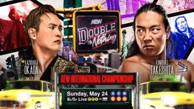 "Okada, no siento respeto por Don Callis ni por Don Callis Family. Intenté que esto no pasara, pero si quieres enfrentarte a mí en Double or Nothing, estaré feliz de quitarte tu título... perra", dijo Takeshita en una breve promo en backstage. "Takeshita, no te temo. No me gustas. No te respeto", respondió Okada antes de increparlo en japonés. "En Double or Nothing, ¡tú perderás!", exclamó.