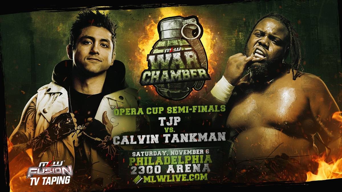 Novedades en la cartelera del próximo show de MLW, War Chamber. Tal y como acaba de anunciar Major League Wrestling, en un comunicado en su página web oficial, Calvin Tankman y TJP protagonizarán una de las semifinales del torneO Opera Cup el cual llegará a su fin el próximo 6 de noviembre en el 2300 Arena de Philadelphia.