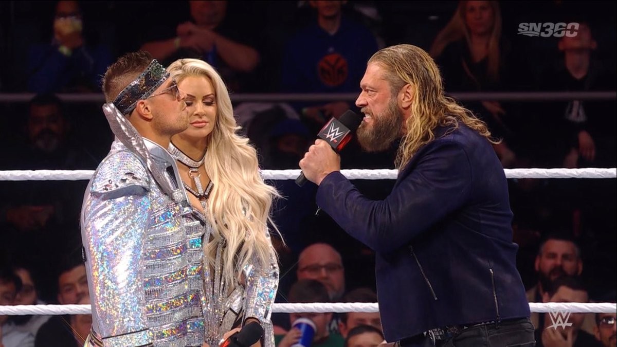 La primera aparición de Edge en el show rojo tras el Draft 2021 se vio interrumpida rápidamente por la entrada a escena de "The Awesome" y su esposa. The Miz protagonizó un tenso intercambio verbal con Edge en el que reclamaba no haber recibido el reconocimiento merecido por su regreso a la empresa. "The Rated R Superstar" respondió que no tenía problema en demostrar respeto esta misma noche, pero Miz se negó a tener algún tipo de combate.
