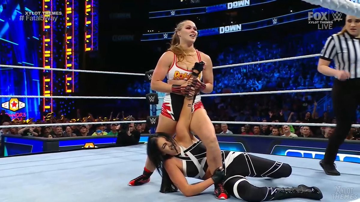 Ronda Rousey derrotó a Natalya, XIa Li, Lacey Evans y Sonya Deville en una Elimination Five Women Match en las transmisiones de Friday Night SmackDown para convertirse en la nueva retadora al Campeonato Femenino de la marca.