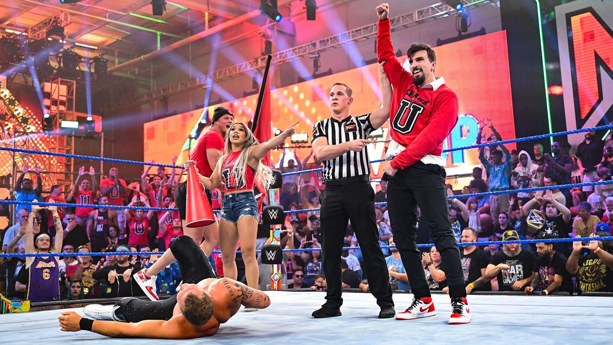 Después del combate, el profesor de Chase University ayudó a Borne a ponerse de pie, le estrechó la mano y le dio una charla de ánimo para concluir el episodio de NXT Level Up.