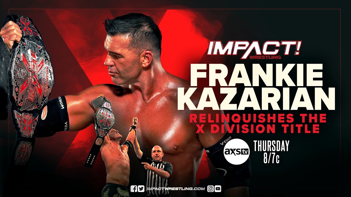 En segundo lugar, se ha anunciado un segmento protagonizado por Frankie Kazarian y el Campeonato de la X-Division. Como ya vimos en el último episodio del show semanal de IMPACT, Kazarian apareció tras el final del evento principal, donde Josh Alexander venció a Bobby Fish, para comunicar al Campeón Mundial de IMPACT que había tomado la decisión de enfrentarse a él por el título máximo de la compañía. Debido a ello, esta semana Kazarian deberá dejar vacante su Campeonato de la X-Division.