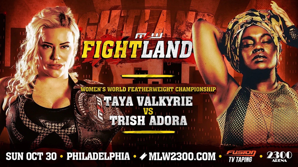 Trish Adora responde el reto abierto de Taya Valkyrie para MLW Fightland 2022. Tal y como anunció anoche Major League Wrestling en su página web y redes sociales oficiales, "La Wera Loca" y "The Afro Punk" se enfrentarán en un mano a mano por el título mundial Featherweight en Philadelphia.