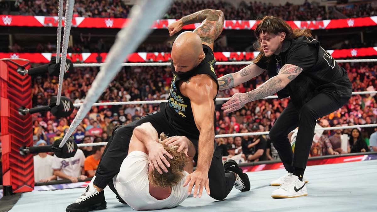 Ricochet ataca a Logan Paul y Dominik Mysterio en WWE RAW