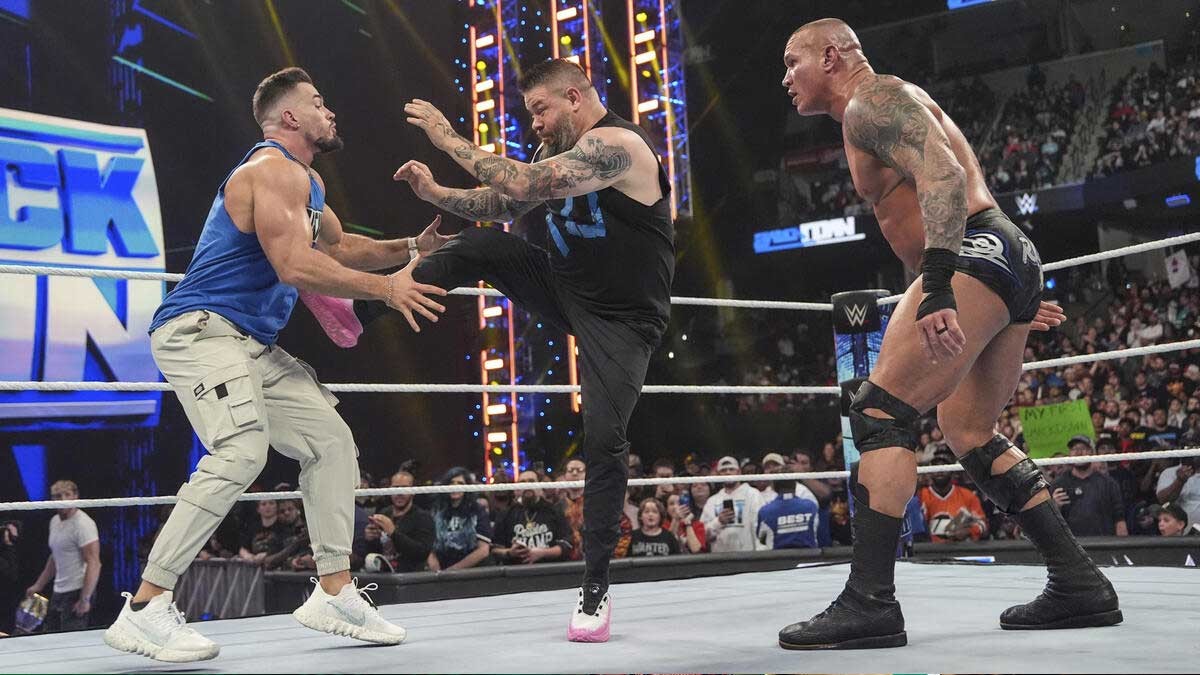 Austin Theory y Logan Paul estuvieron involucrados en el combate y atacaron a Randy Orton una vez terminada la lucha. Cuando tenían a The Viper a su merced, Kevin Owens hizo acto de presencia y ahuyentó a los chicos malos. Entre toda la golpiza, Owens aplicó el Stunner sobre Theory y Orton lo remató con el RKO en pleno vuelo. Fue en ese preciso instante en el que los fans notaron cómo Theory se elevaba a destiempo, mucho después de haber aterrizado con los pies en la lona.