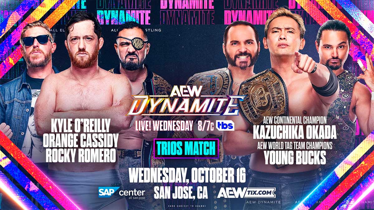 All Elite Wrestling sigue ampliando la cartelera de su show semanal AEW Dynamite. Para el episodio de esta semana, la compañía ha confirmado iuna lucha de tríos. Kazuchika Okada y The Young Bucks se enfrentarán a Kyle O’Reilly, Orange Cassidy y Rocky Romero.