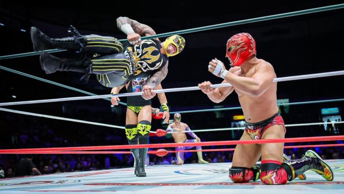 - La Fuerza Poblana (Pegasso, Stigma y Xelhua) vencieron por descalificación a Okumura, Yutani y Rey Bucanero