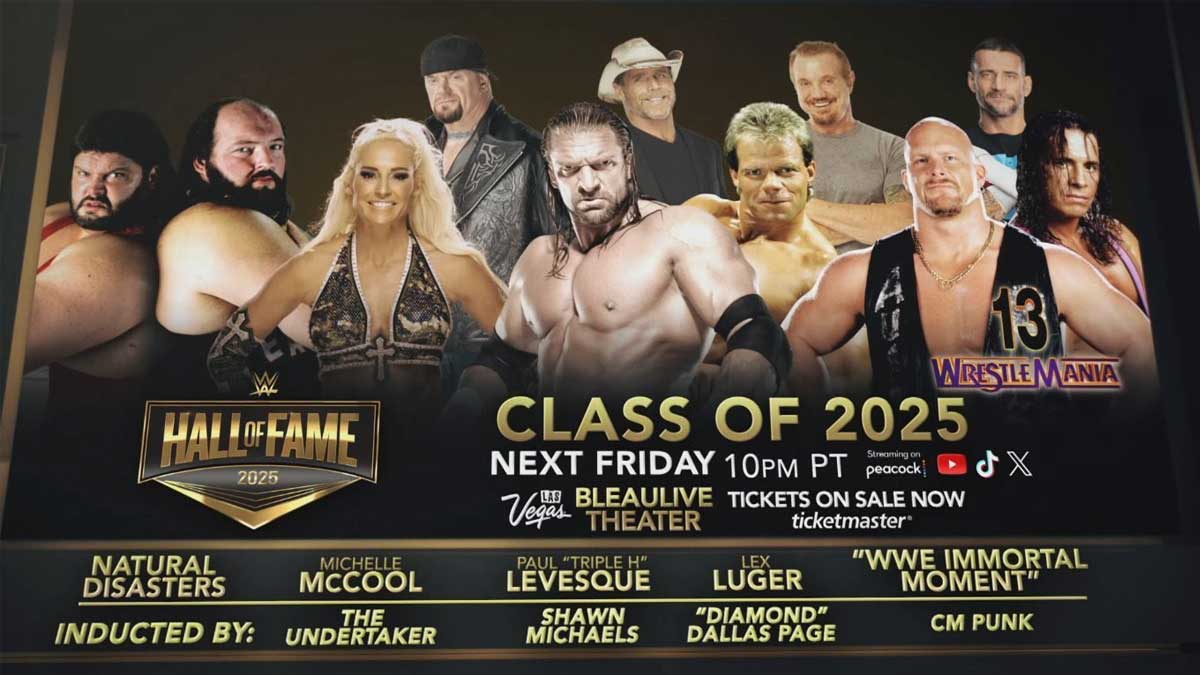La ceremonia del WWE Hall of Fame 2025 se transmitirá en vivo desde Las Vegas a través de Peacock (en Estados Unidos) y en los canales digitales de WWE el viernes 18 de abril a las 10:00 p.m. hora del Pacífico (1:00 a.m. ET del sábado 19).