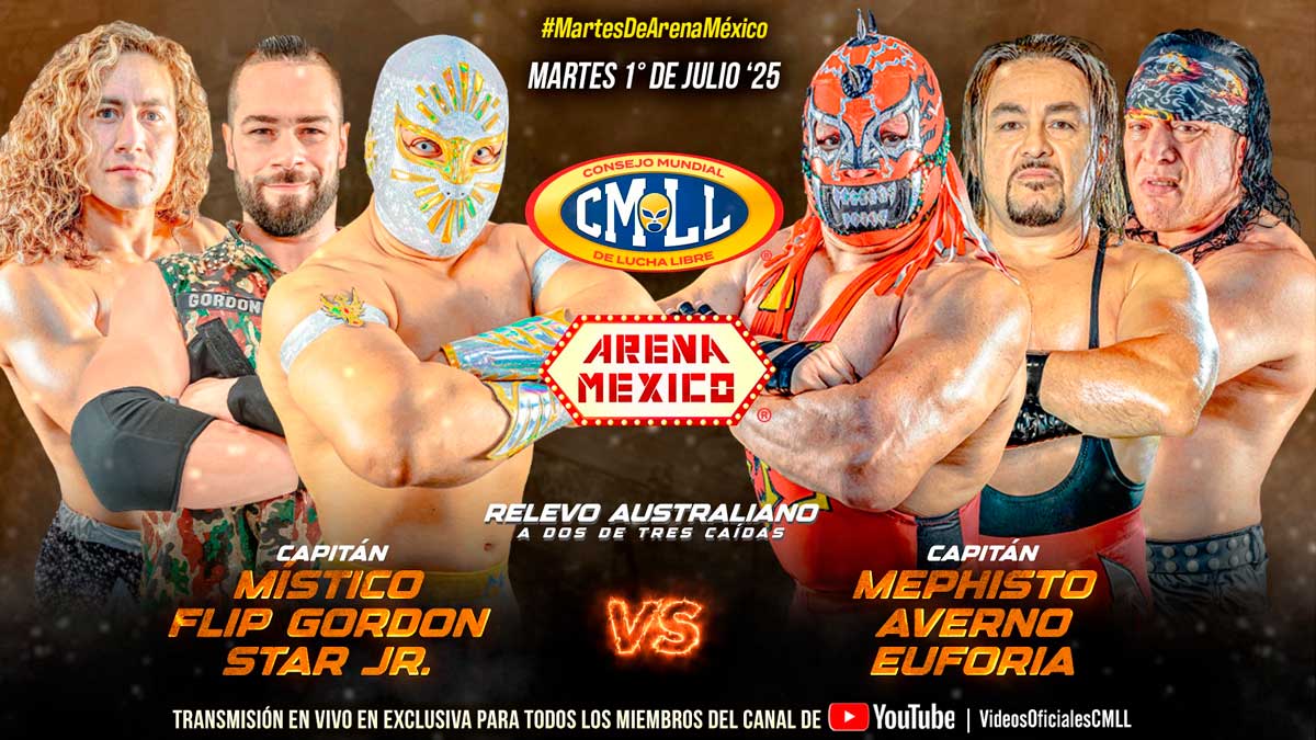 La nota alta de la noche fue sin duda el enfrentamiento estelar, donde Flip Gordon, Místico y Star Jr. vencieron a Los Infernales en una lucha intensa que se extendió casi veinte minutos. Además, Felino y Felino Jr. dominaron su combate con autoridad, ganando en dos caídas seguidas.