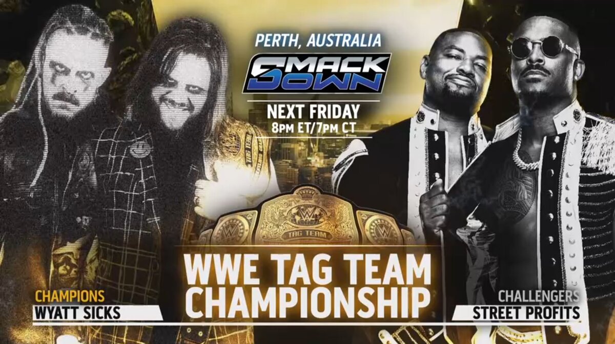 También en la división por parejas, The Wyatt Sicks (Joe Gacy y Dexter Lumis) defenderán sus campeonatos una vez más ante el experimentado equipo de The Street Profits. La lucha tendrá un trasfondo tenso, ya que The Street Profits han estado enfrentando serios problemas internos gracias a la intriga e influencia de los Wyatt.