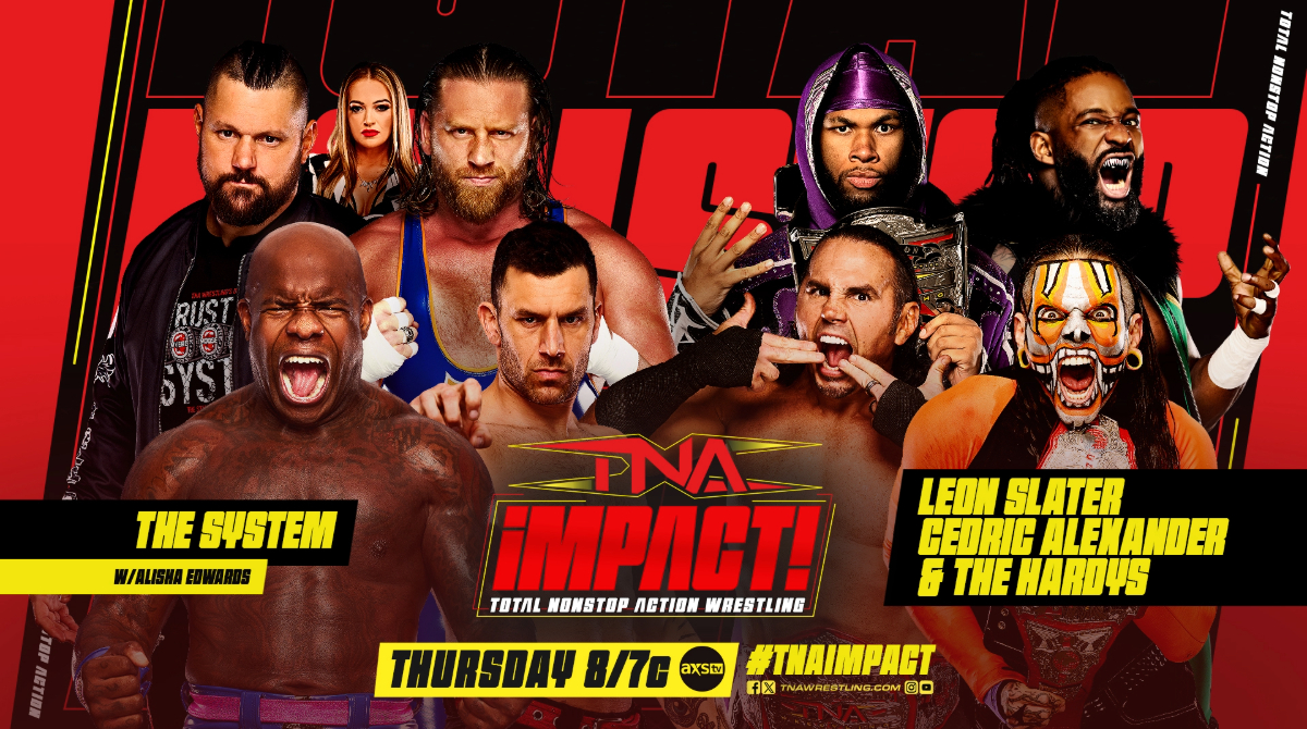 AXS TV y TNA+ emitieron anoche el episodio número 1120 de TNA iMPACT!, en diferido desde El Paso County Coliseum de El Paso, Texas. El show, el último antes del salto a AMC, contó con varios combates y segmentos de interés, destacando la victoria de The Hardys, Cedric Alexander y Leon Slater sobre The System y una firma de contrato protagonizada por Mike Santana, Frankie Kazarian y Nic Nemeth en el segmento estelar de la noche.