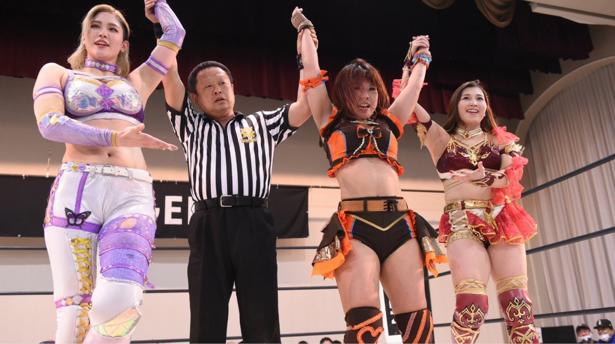 - Victoria Yuzuki y Komomo Minami vencieron a Megaton y Shinno en una lucha por parejas. Minami aplicó un Double Diving Double Footstomp sobre Megaton para la victoria.