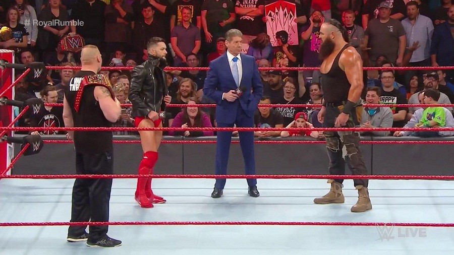 El actual campeón Universal de WWE Brock Lesnar, realizó su regreso al programa semanal de Monday Night Raw. Junto a su representante Paul Heyman, fueron interrumpidos por Vince McMahon, Braun Strowman y Finn Bálor respectivamente. Tras la confrontación, McMahon pautó un combate entre Strowman y Bálor para esa misma noche.