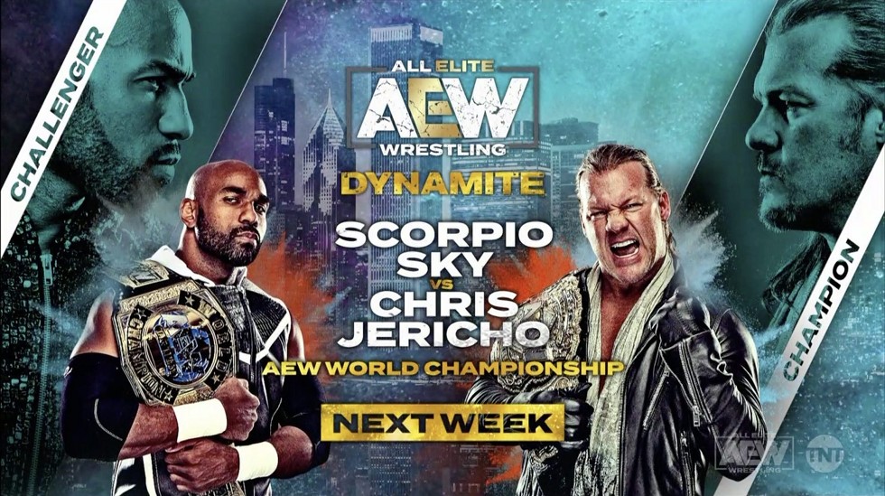Durante las transmisiones de All Elite Wrestling a través de TNT Drama, se ha confirmado que Scorpio Sky se enfrentará a Chris Jericho por el título mundial en el próximo episodio de AEW Dynamite que se realizará el 27 de noviembre en Chicago.