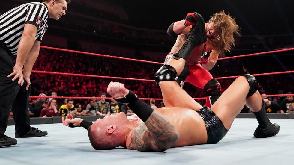 Randy comienza con golpes a la cara, pero luego Styles responde con un whip. Intento de RKO de Randy, pero Styles se desliza afuera. Le barre los pies y luego le choca la garganta contra las cuerdas, pero cuando va por un Phenomenal Forearm, Randy le barre las cuerdas e intenta el Modified DDT. Styles rueda para intentar el Calf Crusher, pero Randy llega a las cuerdas. Randy sale a descansar al ringside pero Styles le vuelve a barrer el tobillo. Al volver de comerciales, Styles recobe golpes en el esquinero, pero logra agarrar a Orton de las piernas. Cuando trata de embestirlo, Orton lo levanta con una catapulta para que se dé de lleno contra el poste. Puñetazos de Randy, que sigue con patada al abdomen y european uppercut. Powerslam de Orton, pero Styles sigue atacando sin piedad la pierna izquierda. Cuando va por una patada, Randy lo atrapa en un backbreaker. Randy posiciona a Styles para un superplex, pero Styles se sale por entre las piernas y vuelve a barrerle la pierna izquierda. Cuenta de dos para Randy luego de un mortal hacia atrás desde la segunda cuerda. Styles intenta un Styles Clash, pero Randy lo saca de catapulta, y conecta el Modified DDT. Randy va por el RKO, pero Styles lo atrapa en un Calf Crusher. Con su pierna sana, Randy lo termina pateando. Phemonenal Forearm de AJ, pero Randy lo anticipa con el RKO.