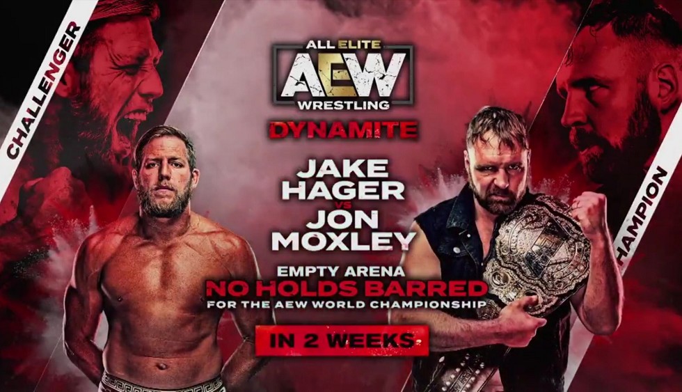 Jon Moxley y Jake Hager se verán las caras por primera vez en el episodio de AEW Dynamite del 15 de abril. Este combate, que supone la primera defensa titular de Jon Moxley desde que ganó el Campeonato Mundial de AEW a Chris Jericho en AEW Revolution, será regido bajo reglas de No Holds Barred, es decir, estipulación extrema donde vale todo.