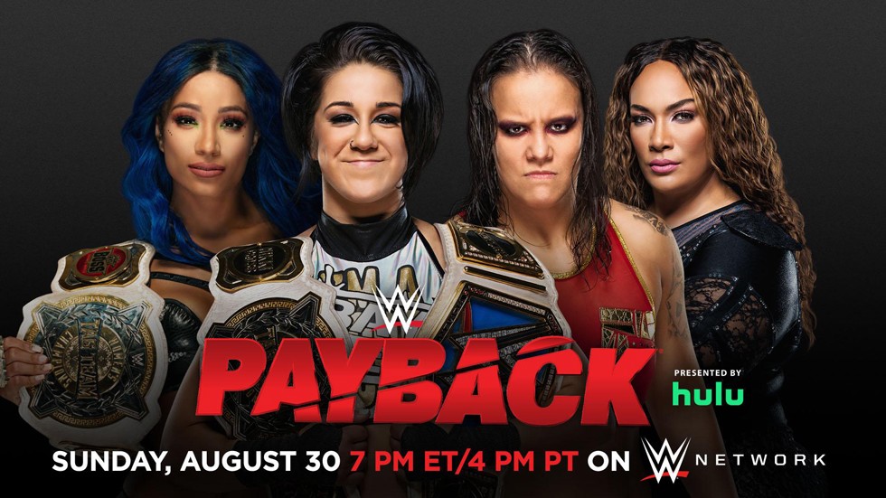 Durante las transmisiones de Monday Night RAW a través de USA Network, se ha anunciado que Bayley y Sasha Banks defenderán los Campeonatos de Mujeres por Parejas de WWE ante Shayna Baszler y Nia Jax en Payback 2020, el próximo pague-por-ver de la empresa.