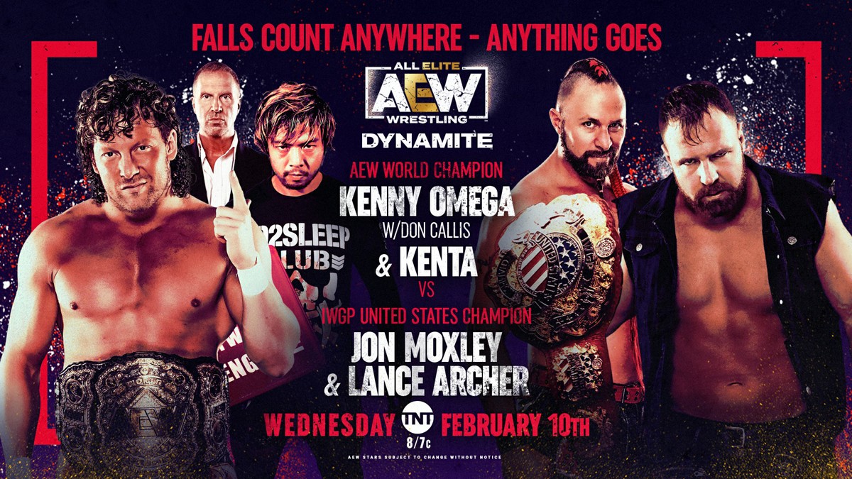 A través de sus redes sociales y su página web, All Elite Wrestling ha anunciado un Falls Count Anywhere match entre KENTA y Kenny Omega contra Jon Moxley y Lance Archer para el próximo episodio de AEW Dynamite.